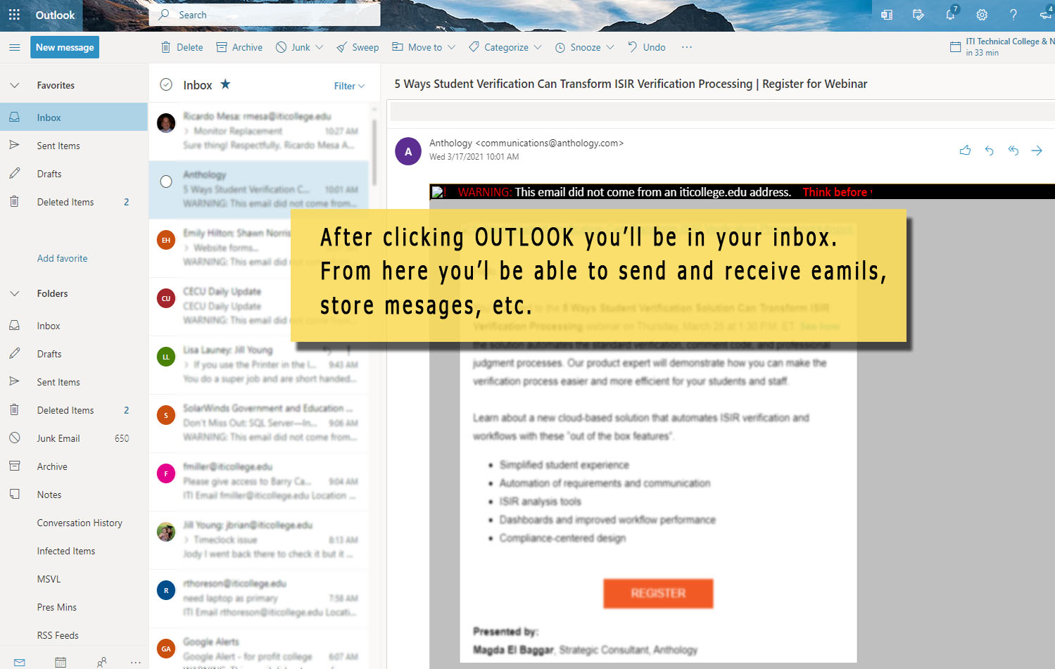 whether you access your ITI email from the   Office 365 website, your office computer, using outlook or from your mobile device,