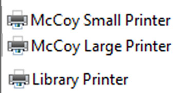 Offices in McCoy will use the McCoy Small Printer whereas the Large Printer is solely for Classroom use.  Anyone using the Library in the McCoy Building will have access to a local library printer.