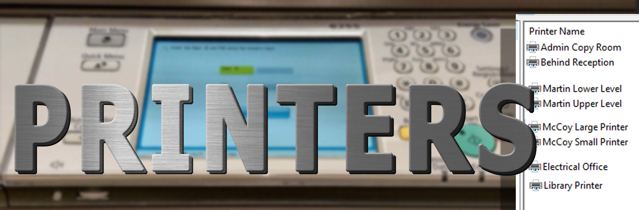 Martin Classrooms will print to the Lower Level Printer while the Offices will use the Upper Level